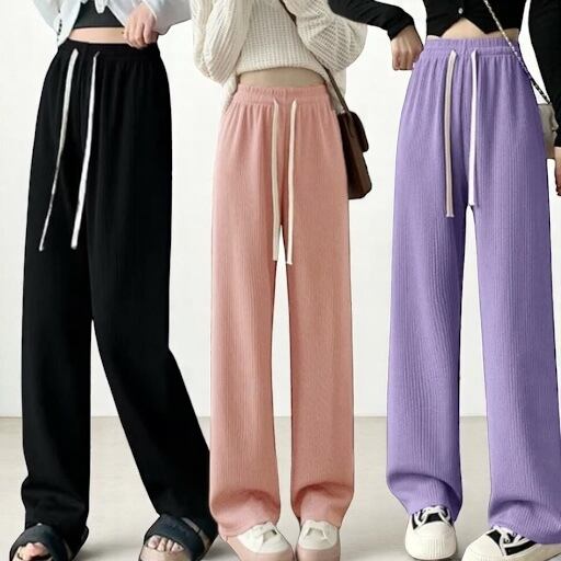カジュアル ロングパンツ ハイウエスト イージーパンツ 体型カバー リラックスパンツ ゆったり 韓国風ボトムス きれいめ